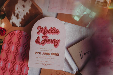 Envelopes: 120gsm coordinating coloured envelopes with the option of indvividul guest addressing and return address printing.